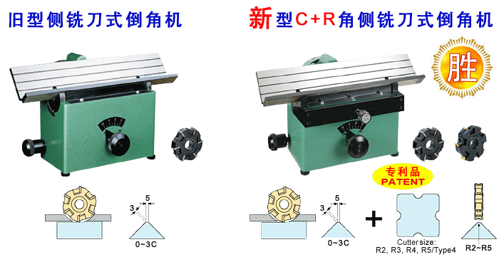 项目 / 品名 | 侧铣刀式倒角机 (旧型) | C+R角侧铣刀式倒角机 (新型) |